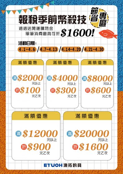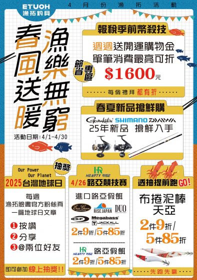 春風送暖漁樂無窮 4月份漁拓活動 ❶.報稅季前幣殺技 ✿週週...