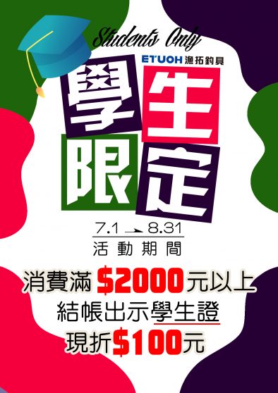 你/妳是學生就現折 活動時間:7/1-8/31 消費滿$元...