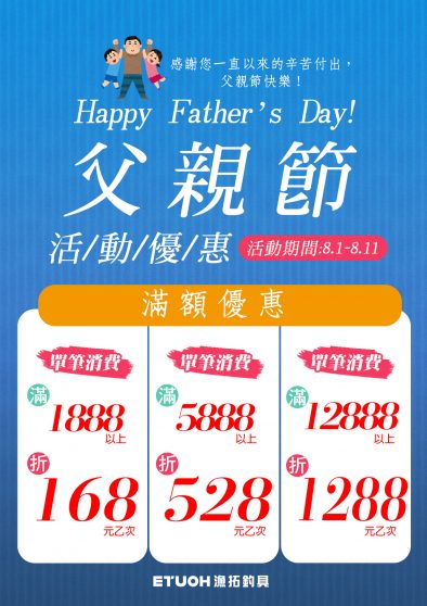 父親節感恩優惠 祝全天下的爸爸們 #父親節快樂! 漁拓準備更...