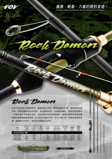 【新品情報】FEV ROCK DEMON 根魔 根魚竿 ROCK DEMON 根魔 根魚竿,纖細的實心竿先,使用輕量的 JIG 時,擁有良好的操作感,竿尾的橘點增加目視性,即使細微咬訊,也能輕易捕捉。使用高密度碳布、竿身均導入竿身強化技術, 有效抑制竿身的多餘晃動。握把則選用特殊造型簍空設計捲線器座搭配黑色 EVA 素材分離式手把,符合人體工學,更增加握感舒適度。整體輕巧好操作,適合追求細膩釣法的你。 FEV ROCK DEMON 根魔 根魚竿: https://www.heartyrise.cn/product/rock-demon/ #FEV #ROCKDEMON #根魔 #根魚竿 #路亞 #軟蟲 #假餌 #底棲 #根釣 #礁石...