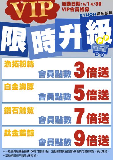【6月端午年中慶】 ❶會員升級月:VIP會員招募 會員權益限...