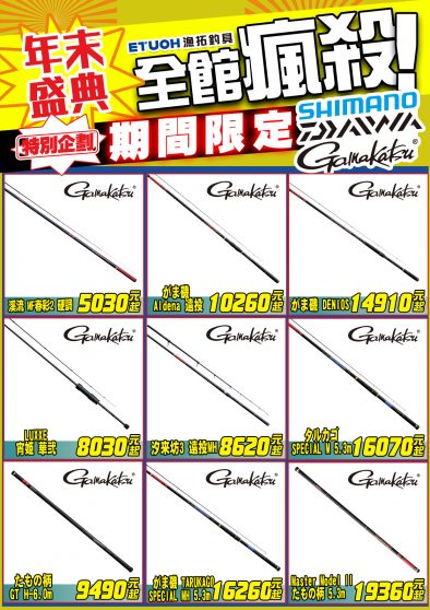 進口品牌釣竿、捲線器千元有找,最低3折起!